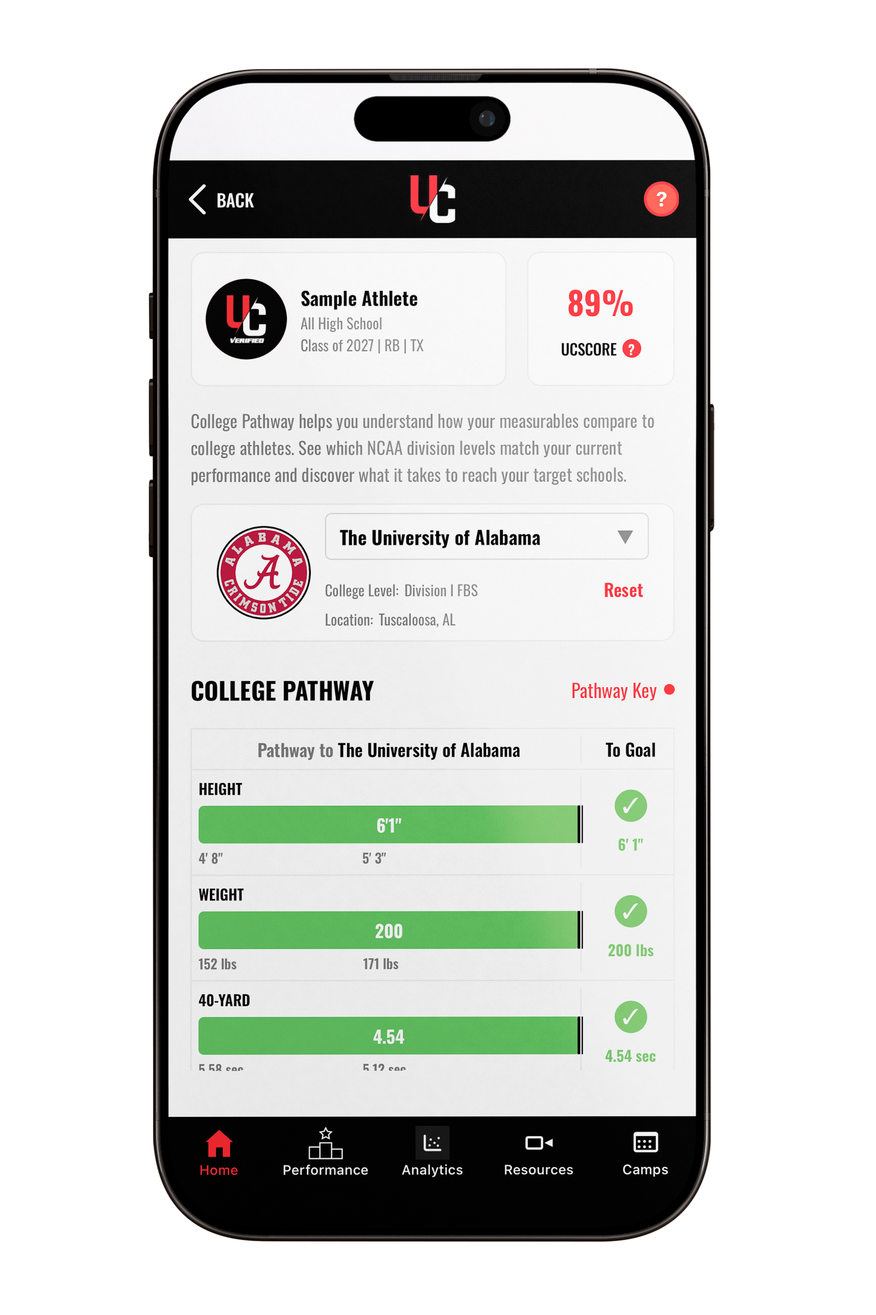 UCVerified takes your combine data and shows you exactly what level of college football best matches your performance.